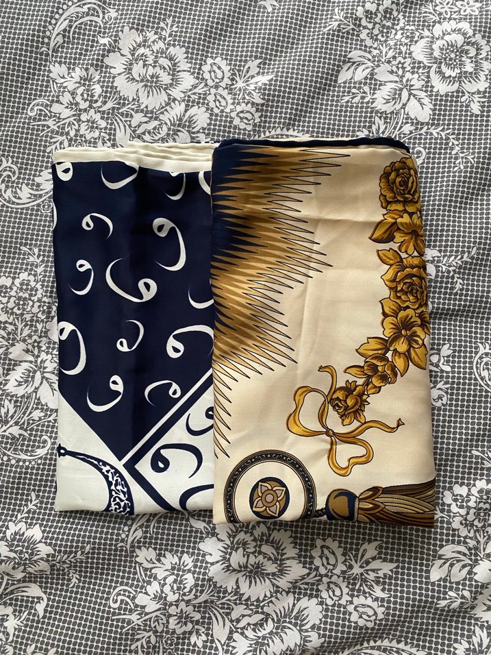 İpek dokusu ve vintage bohem tarzıyla kadın eşarp. Koyu ve beyaz tonlarda, detaylı desenlerle drapeli tasarım sunar.