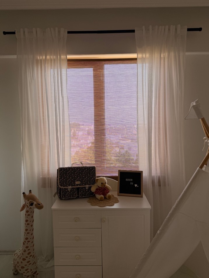 Bohem tarzda, beyaz tül perde, mekâna yumuşak ve zarif bir dokunuş katar.