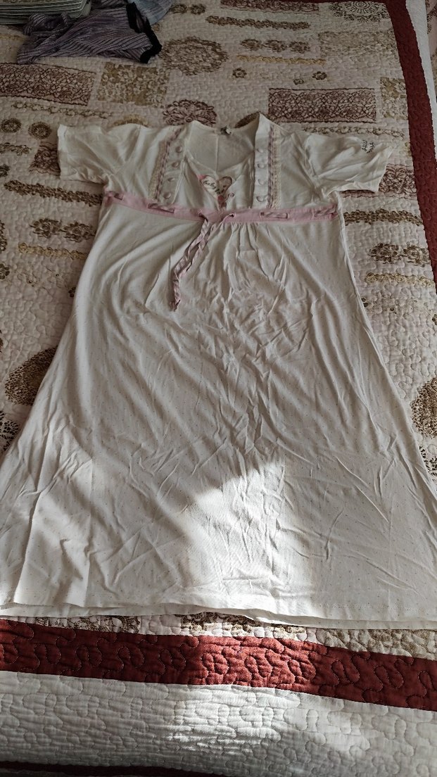 Beyaz Bohem Vintage Kadın Uzun Kısa Kollu Gecelik