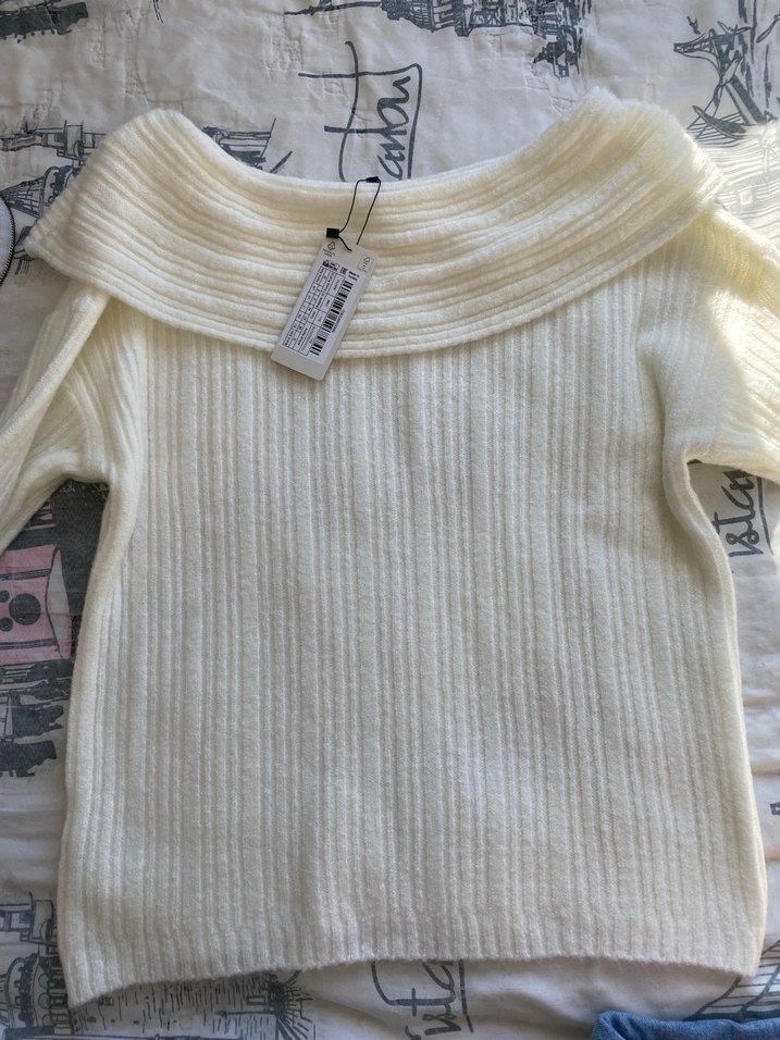 Bu beyaz, bohem tarzı triko kazak, yumuşak dokulu örme kumaştan yapılmıştır. Uzun kollu, yakası boğazlı ve sade desensizdir, günlük kullanıma uygundur.