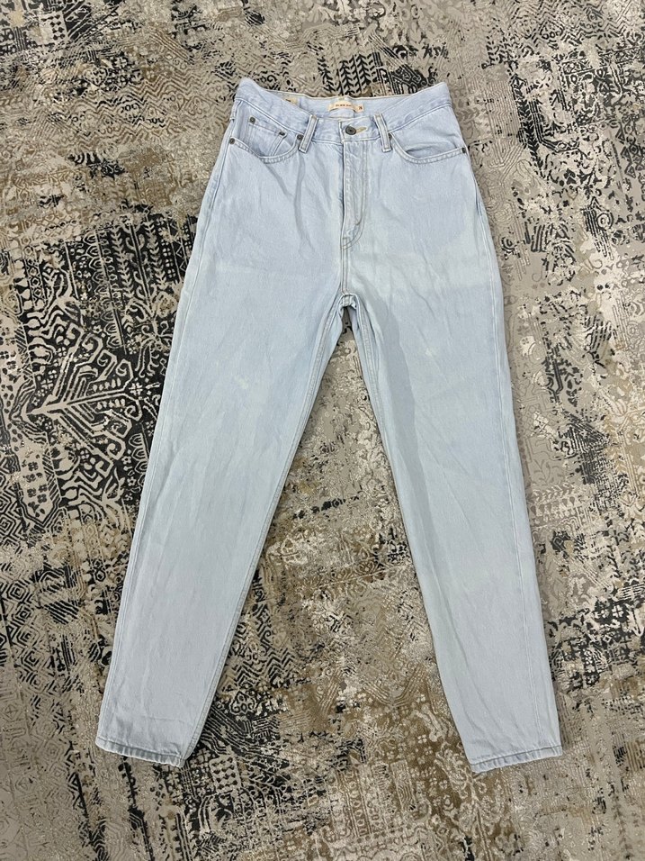 Bol kesim, midi boy buz mavisi denim kadın pantolon, rahat ve şık sokak stili için ideal. Günlük kullanım için uygundur. 26/28