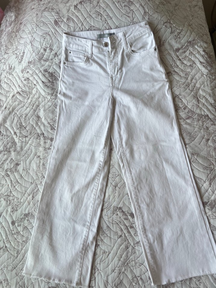 Geniş paça jean, hasarı yok. boyum 157 ayak bileğime geliyor paçası. Beli ve paçasıyla oynanmadı orijinal model. Çok rahat ve şık çok severek kullandım. Hesabımda aynısının mavi kotu da var.
