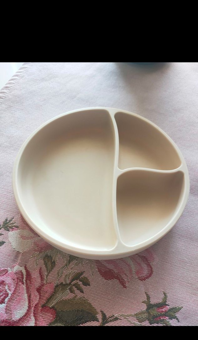 Bu beyaz çocuk tabağı, yiyecekleri ayırmak için üç bölmeli tasarıma sahiptir, çocuk yemekleri için uygundur. ️Alt tabanı vakumludur.