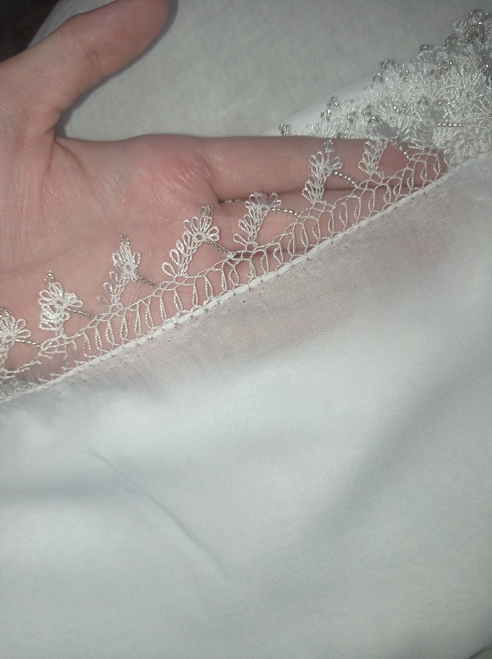 beyaz, boncuk islemeli tülbent