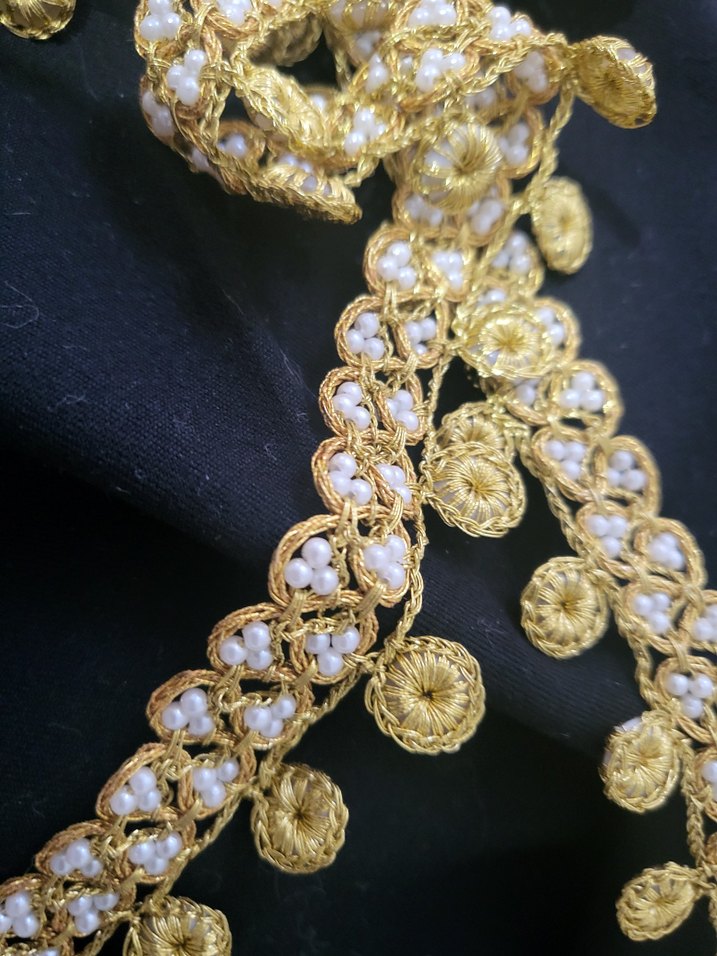 Bohem tarzda, küçük. bocukdetaylı ve altın iplikle işlenmiş el yapımı dantel. Zarif ve detaylı bir tasarıma sahiptir. ✨3metre 10. cm uzunluk..