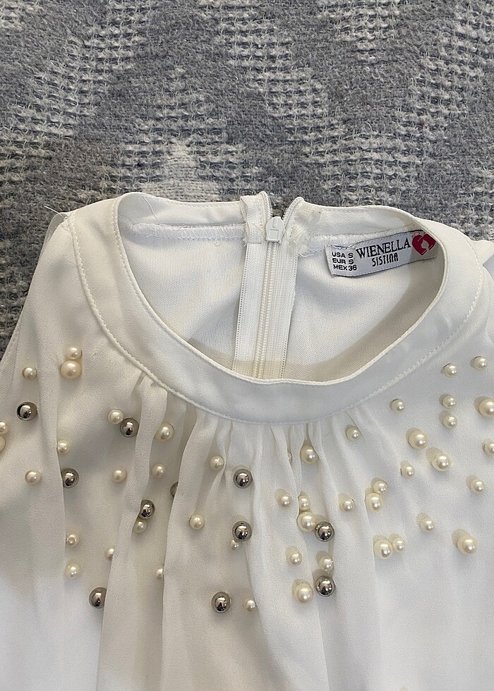 Beyaz boncuklu bluz