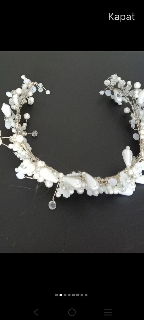 Beyaz Boncuklu Bohem gelin Saç Aksesuarı