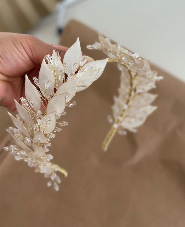 Beyaz Boncuklu Bohem nişan düğün tacı