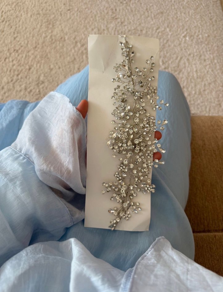 Beyaz plastik taban üzerine işlenmiş zarif boncuk detaylarıyla minimalist ve bohem tarzda saç aksesuarı. Trend belirleyiciler için ideal.