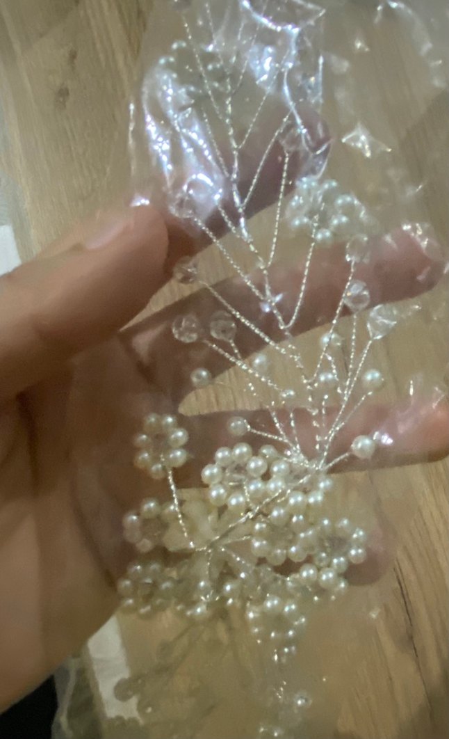Plastik malzemeden yapılmış, beyaz boncuklu bohem tarzda saç aksesuarı, göz alıcı ve modaya uygun.