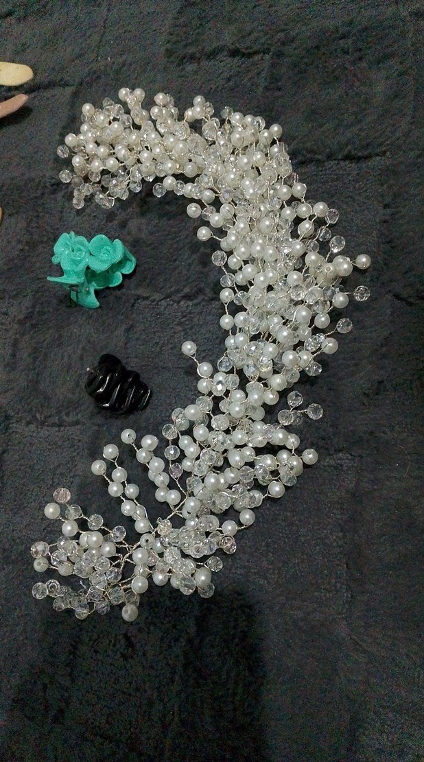Beyaz plastik boncuklarla süslenmiş, avant-garde ve bohem tarzını birleştiren modaya uygun saç aksesuarı. Trendsetterlar için ideal. ✨ tokayla veya slikonla gelin başına tutturulur