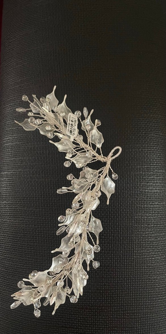Beyaz cam boncuklarla süslenmiş, bohem tarzda zarif bir saç aksesuarı. Parlak ve şık görünüm sağlar. ✨ Nişanım için aldım ama kullanmadım. Yeni ve etiketli duruyor.
