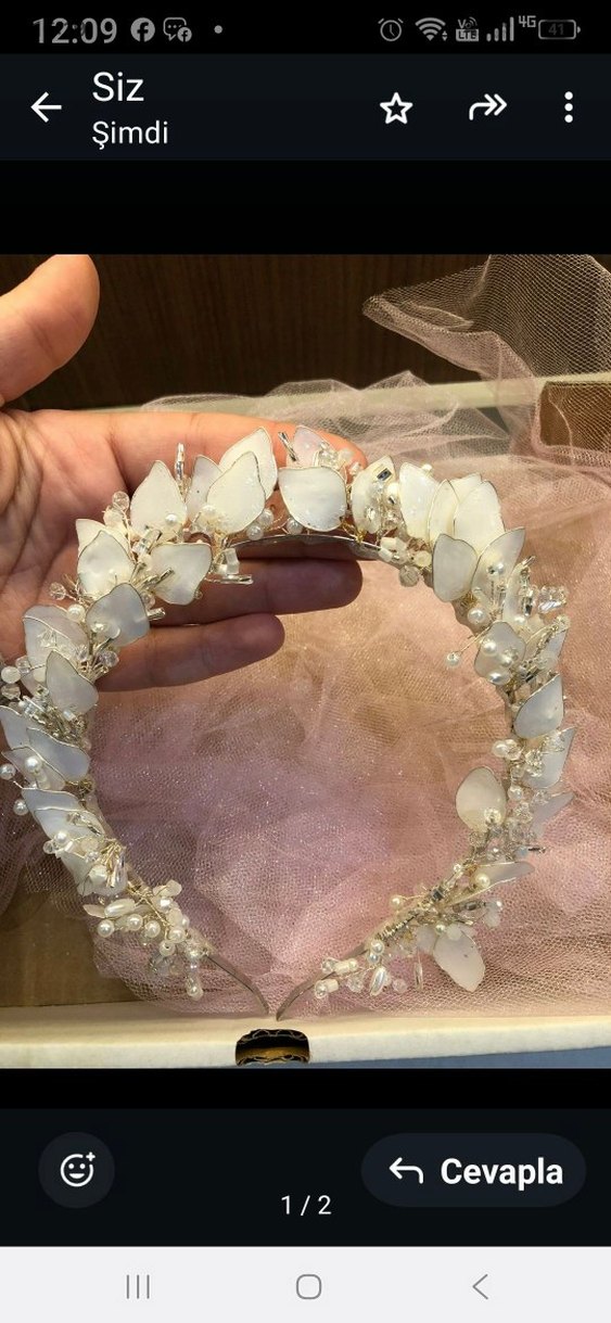 sadece 1 kez nişanda kullanıldı sedef yapraklı taç Beyaz cam kelebekler ve boncuklarla süslenmiş, bohem ve gösterişli tarzlar için uygun bir saç aksesuarı. Avant-garde ve modaya uygun bir tasarım.