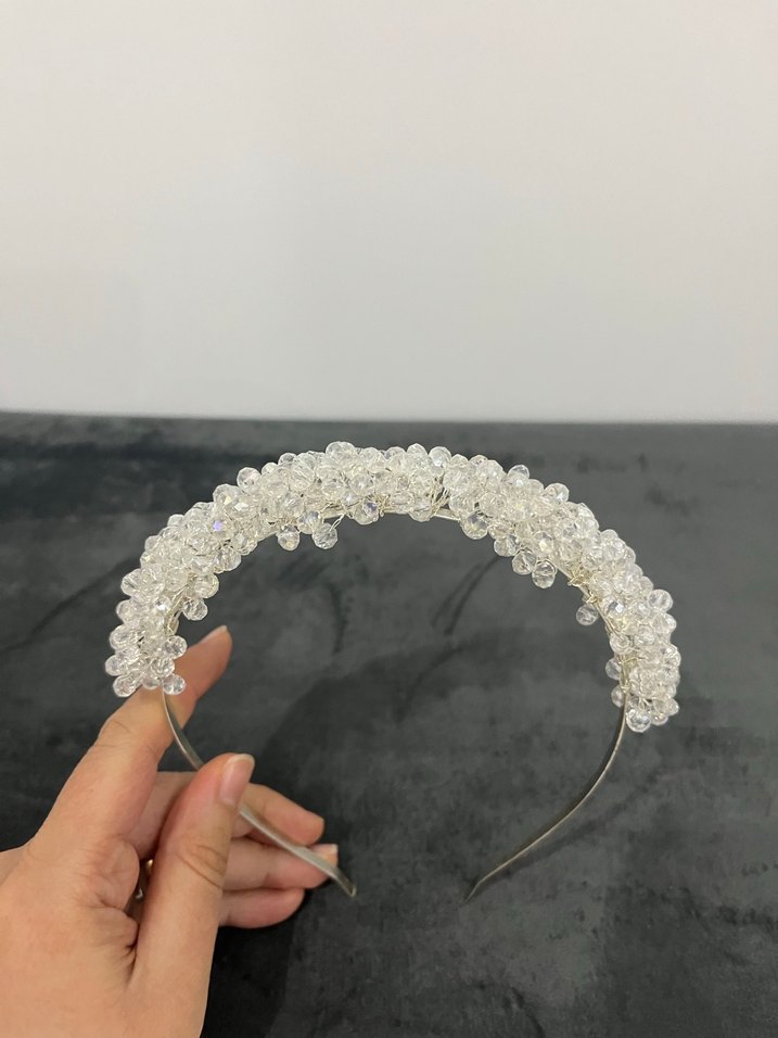 Beyaz Boncuklu Cam Taç
