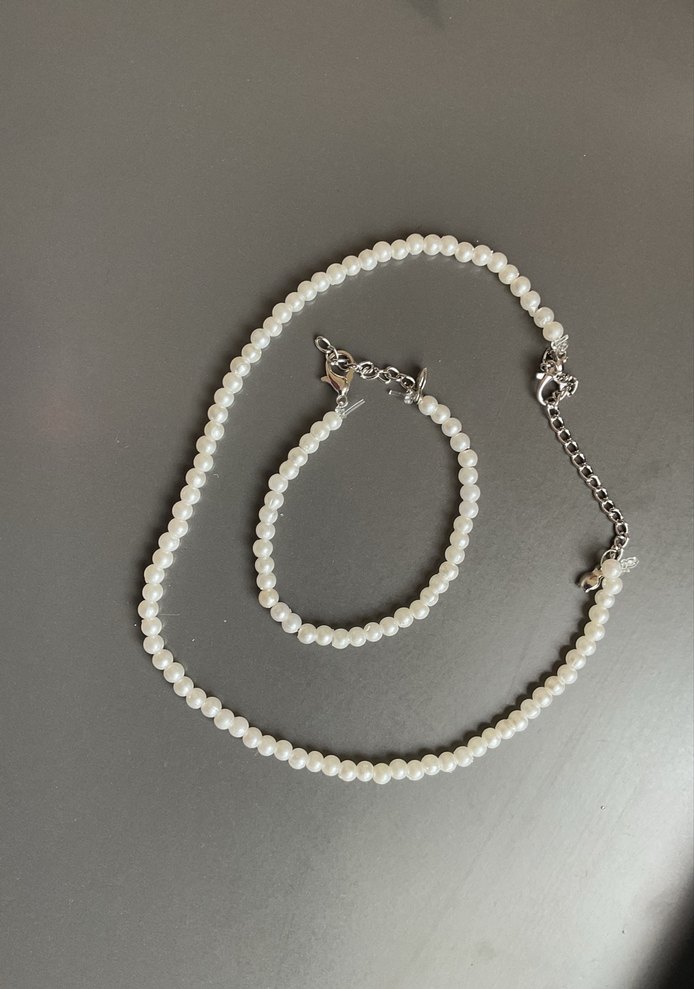 Beyaz boncuklardan oluşan, minimal ve bohem tarzda midi uzunluğunda kolye ve bileklik seti. Günlük kullanıma uygundur,el yapımıdır. ✨