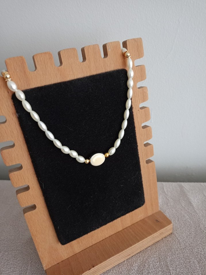 beyaz boncuklardan oluşan, minimal ve bohem tarzda günlük kullanıma uygun klasik şıklıkta kolye.