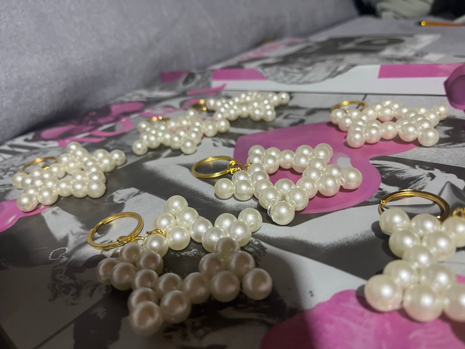 Altın halka üzerinde inci gibi boncuklarla süslenmiş beyaz boncuklu anahtarlıklar, çağdaş ve göz alıcı tarza sahip. ✨ söz nişan isteme hediyelikleri instagram Nisaybuketevi fiyat için mesaj atınız