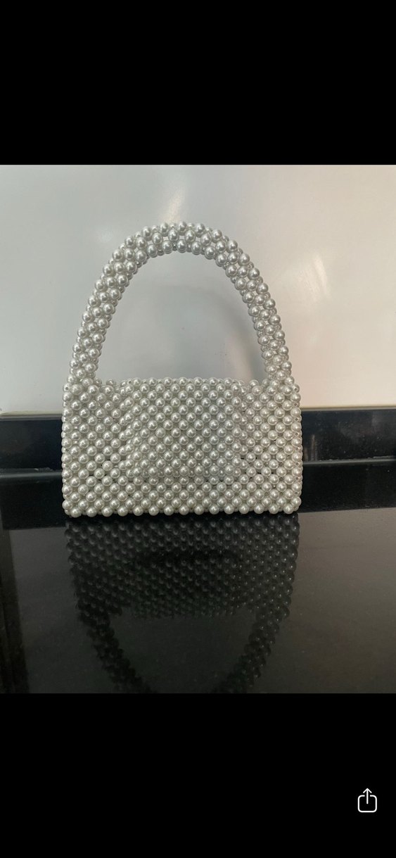 El emeği Plastik malzemeden beyaz boncuklu kadın el çantası. Minimalist tasarımıyla sokak modası ve günlük kullanım için uygundur. Hemen teslim hiç kullanılmamıştır. Ölçüleri görselde mevcuttur