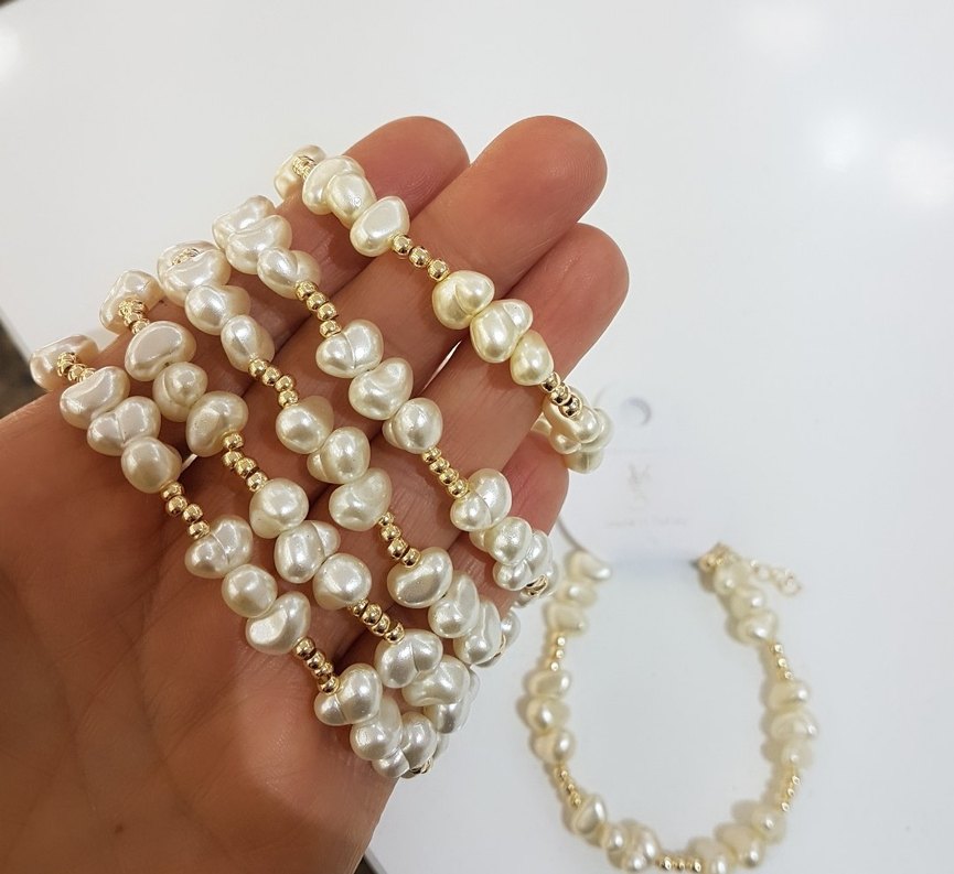 Beyaz boncuklu detaylara sahip, bohem tarzda kadın el zinciri. Düğün ve retro görünümler için uygundur. ✨
