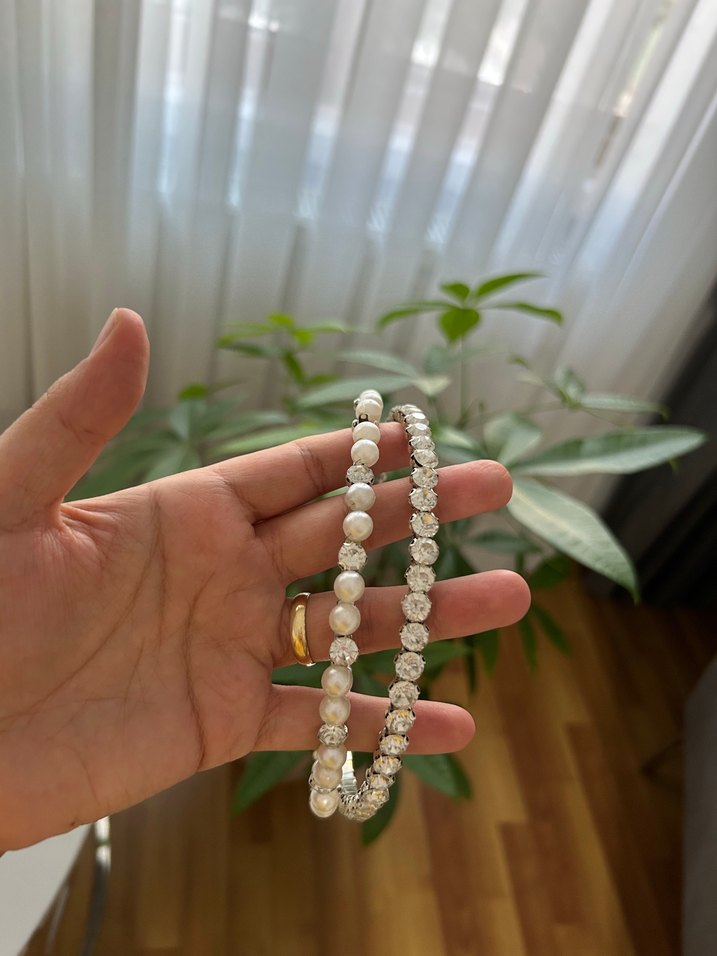 Beyaz boncuklu, kadın el zinciri, bohem ve minimalist tarzda düğün için uygundur. Bir adet boncuk düşmüştür.
