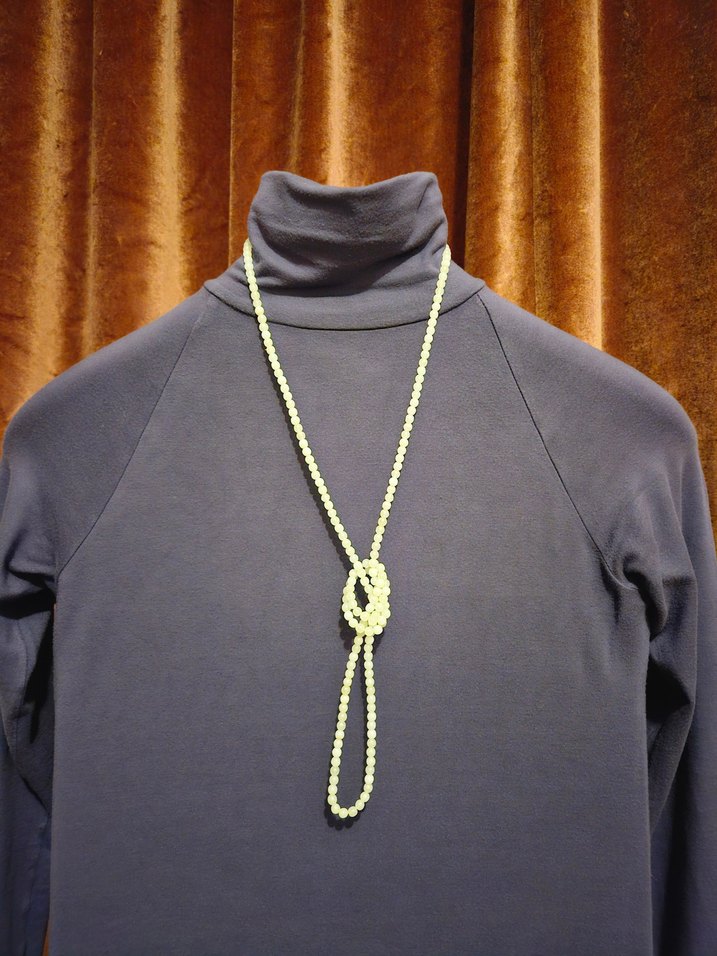 Opak beyaz cam boncuklu 120cm uzunlukta, klipsli vintage kadın kolye.