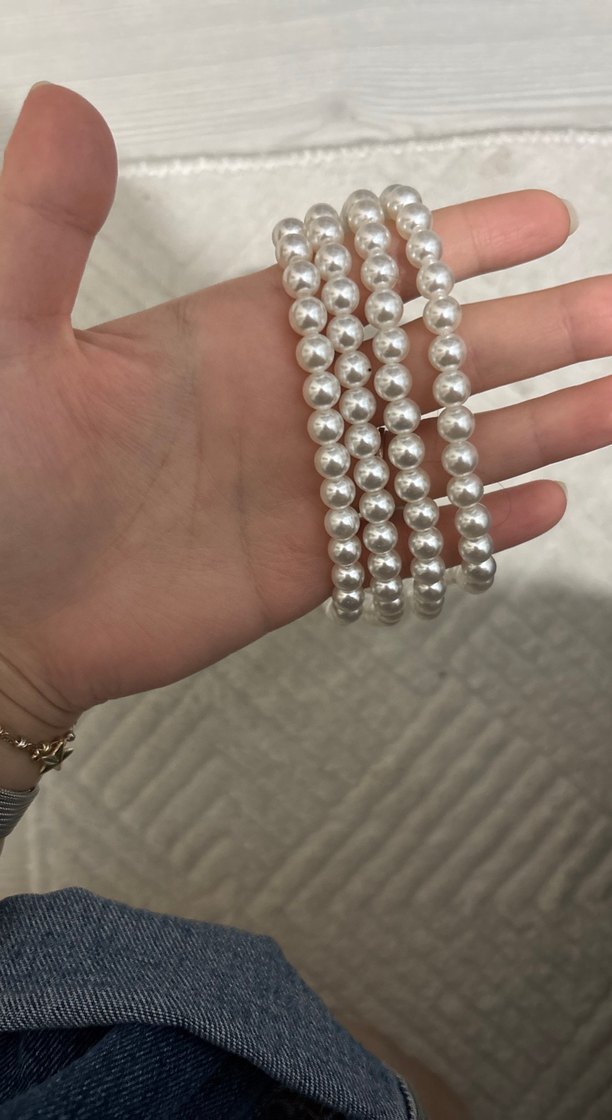 Minimalist beyaz boncuklardan oluşan dörtlü inci kolye yeni hiç kullanılmadı