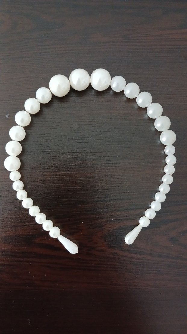 İpek gibi dokulu, beyaz boncuklu saç aksesuarı. Minimalist ve bohem tarzda, retro ve hippie görünümler için uygun.