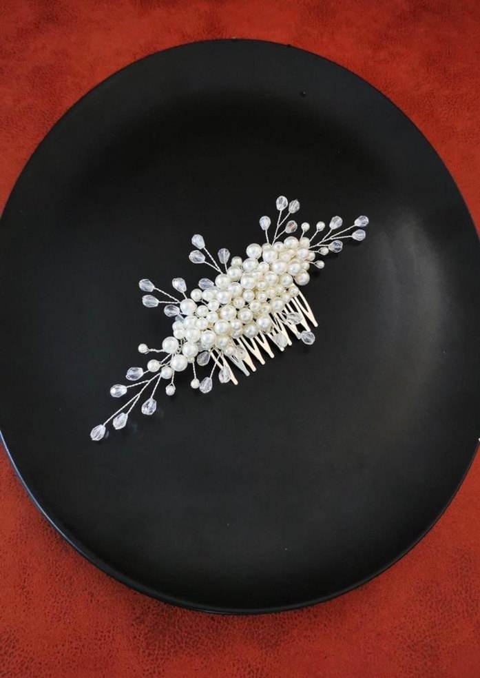Beyaz cam boncuklarla süslenmiş, klasik ve zarif tarzda kadın saç aksesuarı. Geleneksel tarak yapısıyla kolay kullanım sağlar. Düğünüm için almıştım ama seçtiğim saç modeline uygun olarak diğer aksesuarı kullandığım için bunu hiç kullanmadım