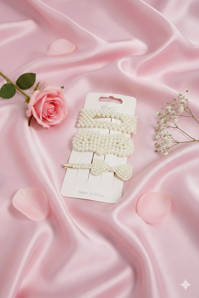 Plastik malzemeden yapılmış beyaz boncuklu saç tokaları, minimal ve bohem tarzı yansıtır. Sade ve temel görünümler için uygundur.