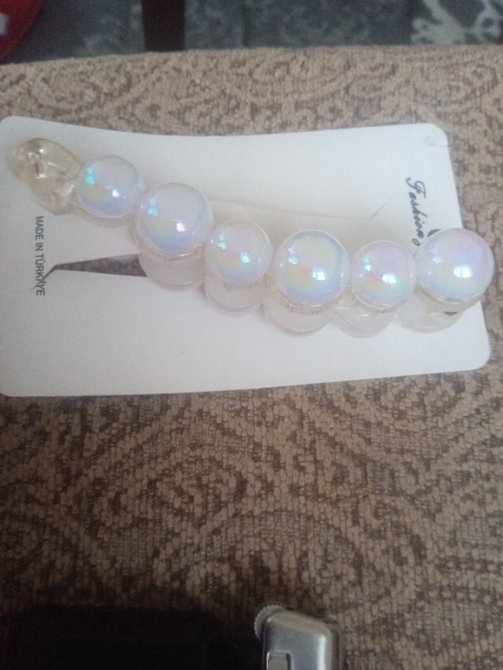 Beyaz boncuklardan oluşan minimalist tasarımlı plastik saç tokası, sade ve şık bir görünüm sunar.