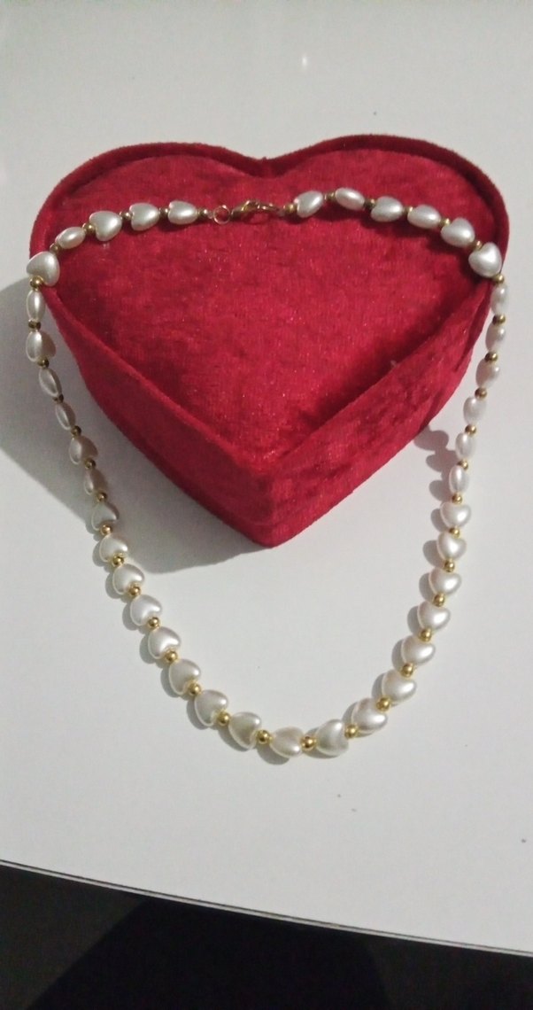 Beyaz boncuklardan oluşan, klasik ve gösterişli tarzda, normal midi uzunlukta boncuklu kolye. Kırmızı kalp kutu ile birlikte gelir.