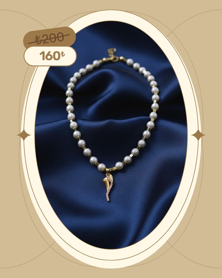 Beyaz boncuklardan oluşan, yılan desenli kolye ucu ile bohem tarzda midi uzunlukta bir kolye. Günlük zarafet için uygundur.