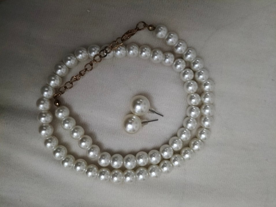 Beyaz Boncuklu Midi Kolye ve Küpe Seti