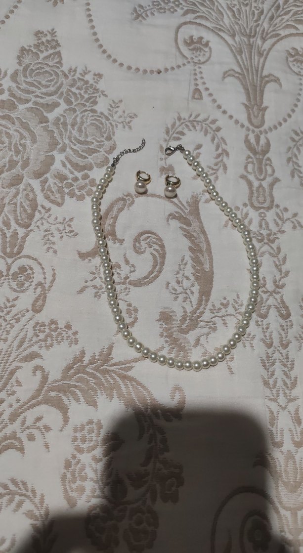 Beyaz boncuklardan oluşan midi uzunlukta kolye ve uyumlu küpeler. Klasik vintage tarzı ve işleme detaylarıyla günlük kullanıma uygundur.