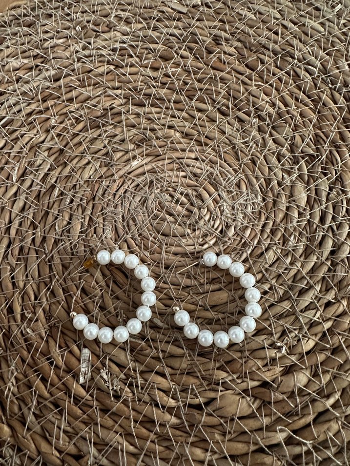 Beyaz boncuklarla işlenmiş kısa halka küpeler, minimalist bohem tarzı ve düğünler için uygundur. ✨