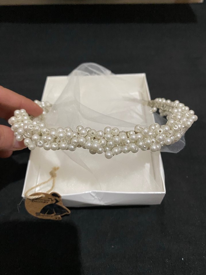 Beyaz boncuklarla süslenmiş, vintage tarzda klasik zarafet taşıyan plastik saç aksesuarı.
