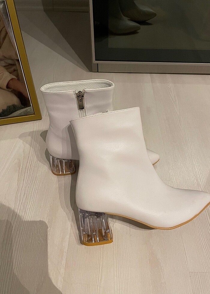 Topuğu şeffaf detaylı beyaz bot . Hiç giyilmemiş yemi ürün . Detaylarda zaten belli ayakkabının altondan içi sıcak tutar detayı mevcuttur . 36 numara giyen herkes alabilir . Ece’nin butiğinden alınmıştır . Lütfen almayacak olanlar ne saçma teklifle gelsin ne de mesaj atsın . Alana şimdiden hayırlı olsun