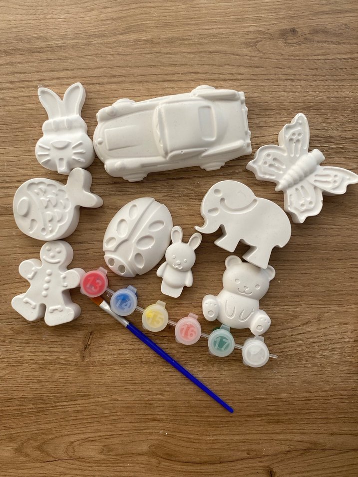 Farklı şekillerde boyanabilir oyuncaklar, fırça ve renkli boyalar ile birlikte sunulur. Seçeceğiniz üç farklı figür altılı boya tüpü ve fırça ile birlikte gönderilir
