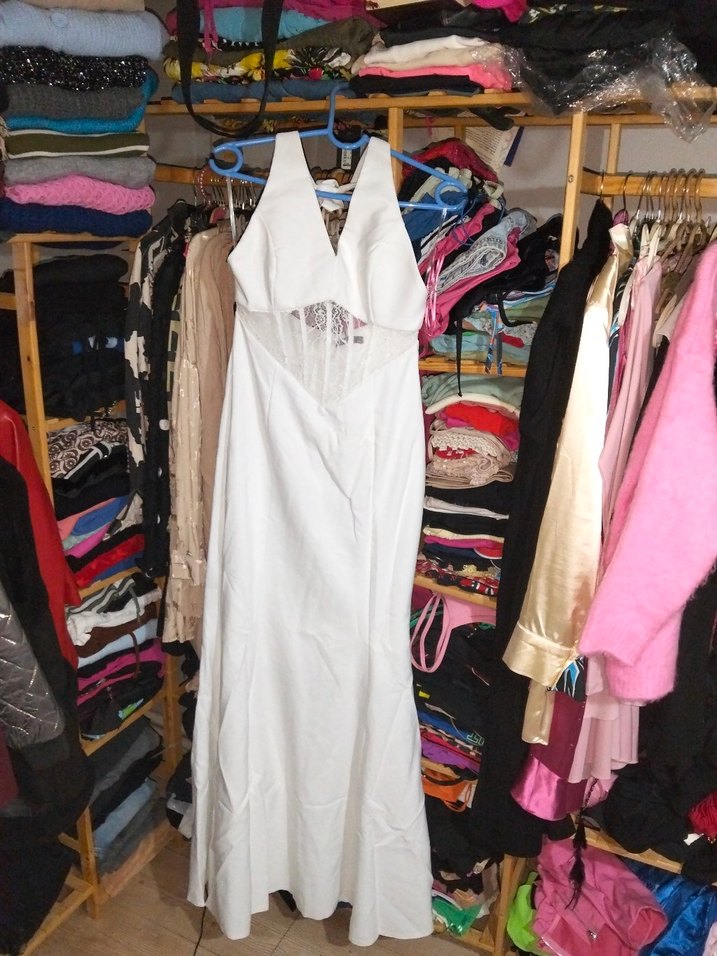 Beyaz Boyundan Baglamali Uzun Kadın Elbise