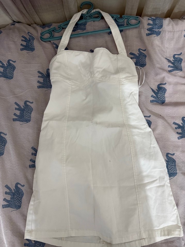 Beyaz Boyundan Geçirmeli Kısa Elbise