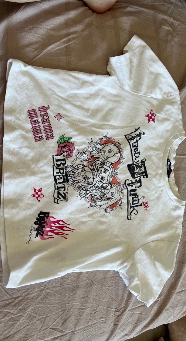 Pamuklu beyaz kız tişörtü, kısa kollu ve salaş kesimlidir. Rock punk tarzı baskılarla sokak modasına uygun.