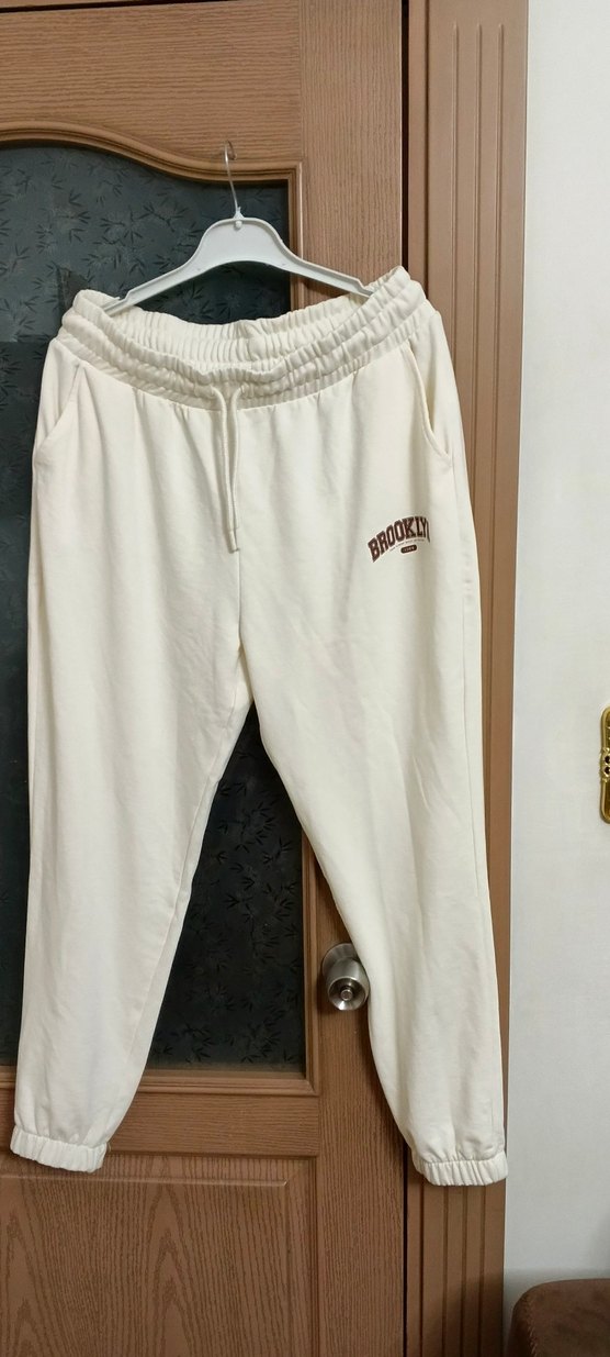 Beyaz pamuklu kumaştan, rahat bol kesim ve 'BROOKIR' baskılı kadın eşofman. Günlük kullanıma uygun, şık ve rahat bir model. ️sıfırdir hiç kullanılmamış