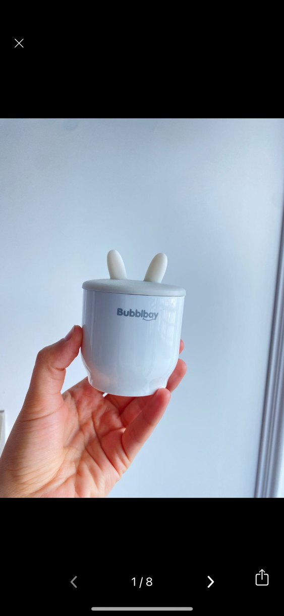 Beyaz, pastel tonlarda Bubblbay bebek biberonu, sevimli tavşan kulaklı kapaklıdır. Bebeklerin rahat beslenmesi için uygundur.
