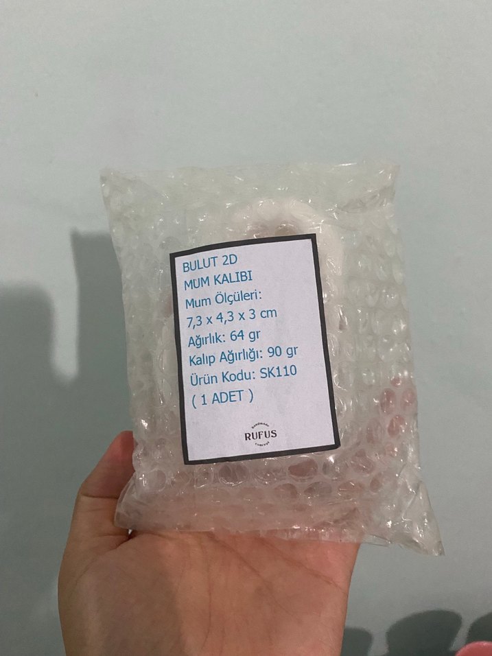 7,3 x 4,3 x 3 cm ölçülerinde, 64 gram ağırlığında beyaz pastel bulut mum kalıbı.