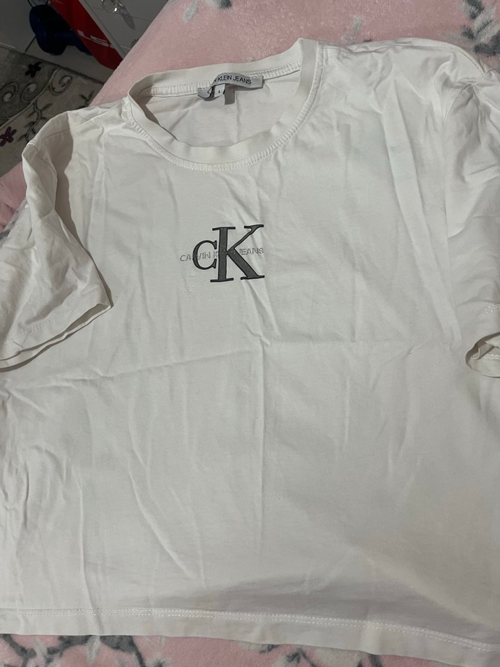 Beyaz Calvin Klein Baskılı Kadın Tişört