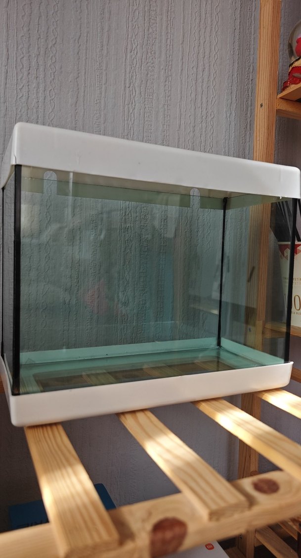 Uzunluk 30 cm yükseklik 23 cm genişlik 14 cm Beyaz çerçeveli, camdan yapılmış şeffaf sides akvaryum tankı. öğrenciyim harçlığımı çıkartmaya çalışıyorum