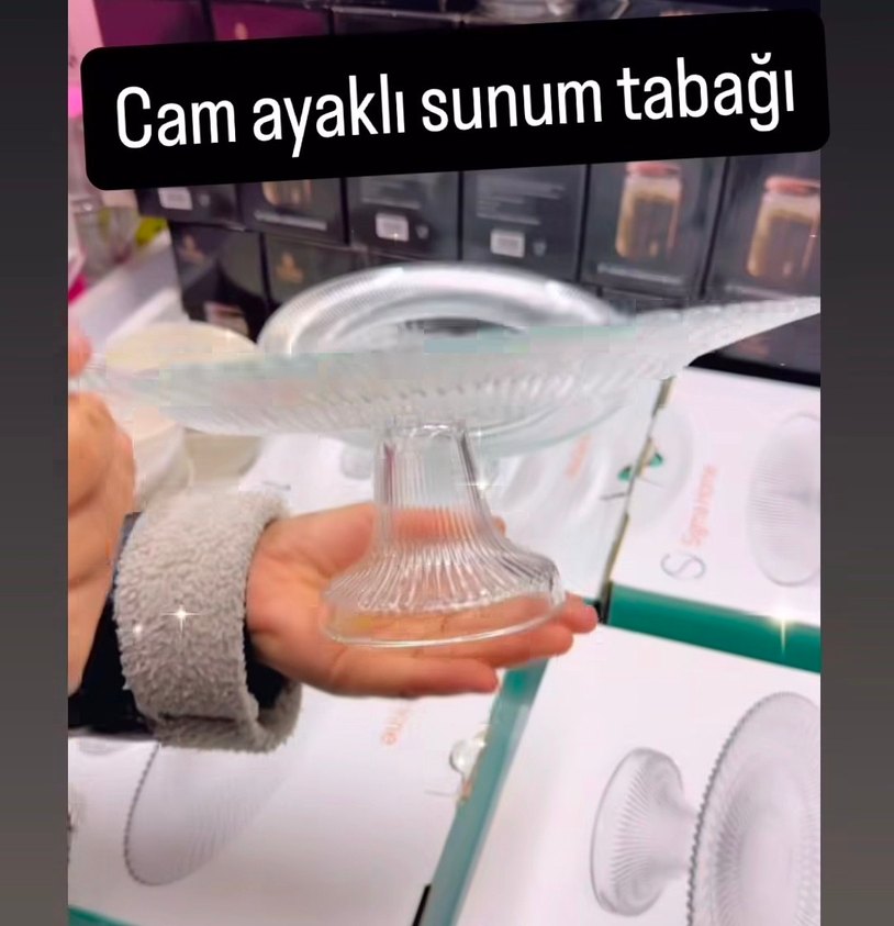 Beyaz camdan yapılmış, ayaklı ve desensiz sunum tabağıdır. Tatlı veya atıştırmalıklar için uygundur. ️