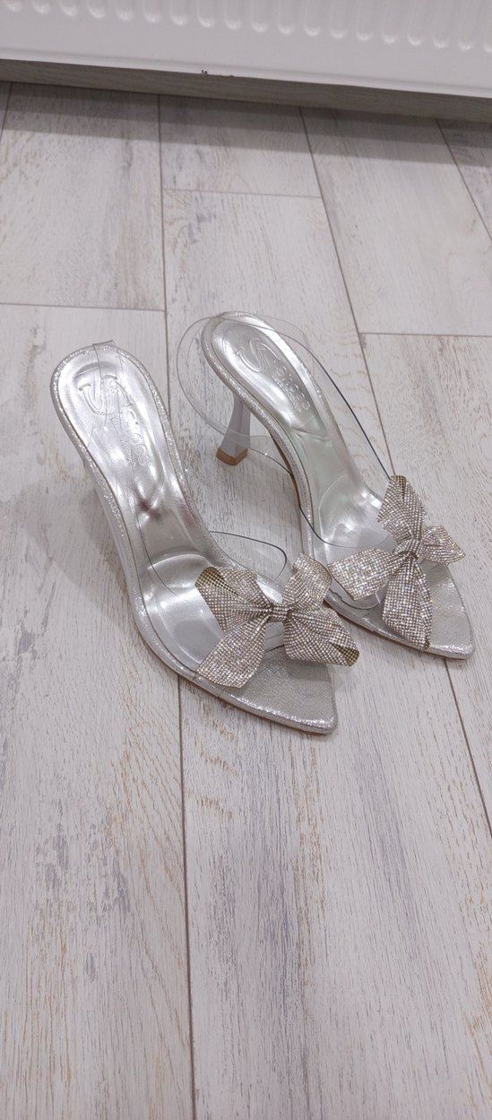 Beyaz Cam Stiletto Fiyonk Detaylı Kadın Ayakkabı