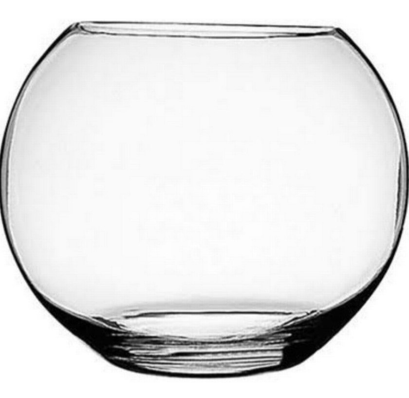 Beyaz camdan yapılmış, sade yuvarlak şekilli bir vazo. Fanus. Farklı dekorasyonlara uyum sağlar.