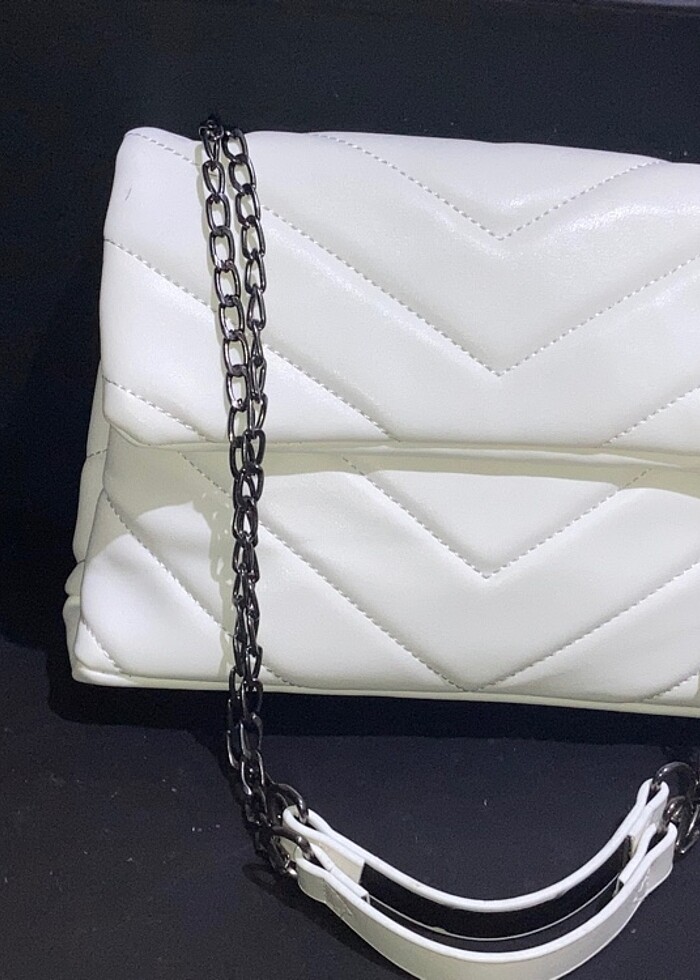 beyaz zincirli kıl çantası